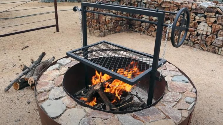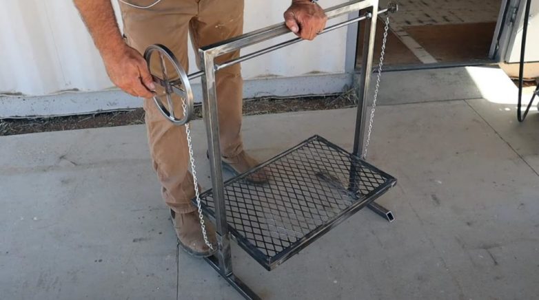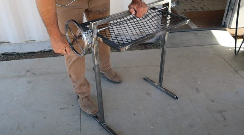 Особенность самодельного барбекю заключается в том, что решетку можно регулировать по высоте для более качественной прожарки мяса.