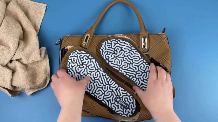 Возьмите вьетнамки, обрежьте верхнюю часть. Также понадобится подошва. Для этого подойдёт, например, старая сумка. Обрежьте по размеру вьетнамок + 1,5 см.