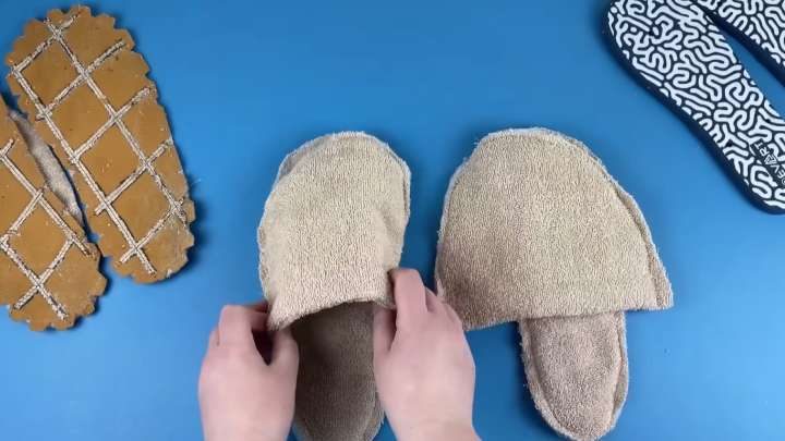 Из деталей полотенца сшейте тапочки изнанкой наружу.