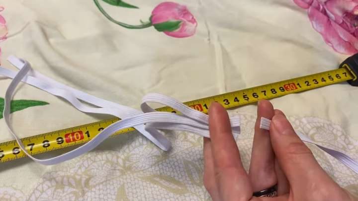 Теперь отмерьте 30 см резинки без натягивания, отрежьте 4 кусочка.