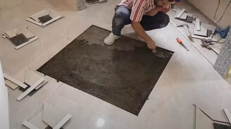 В данном случае смысл всех творческих телодвижений заключается в том, чтобы заменить старую плитку на новую, но только в одном конкретном месте.Подготовка и разметка