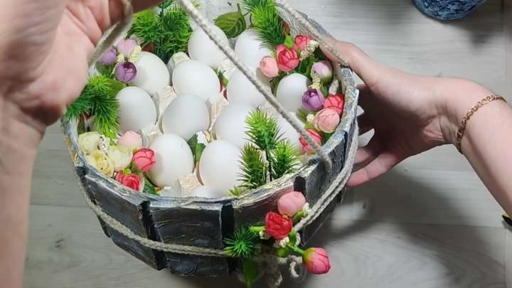 В такой очаровательной корзинке можно принести красивые пасхальные яйца на праздник родным и близким!