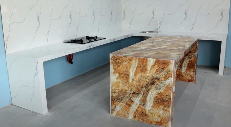 В сегодняшней статье расскажем и покажем, как своими руками сделать кухонный уголок с обеденной зоной, сделанной по принципу «островка». Всё будем делать из бетона — получится надёжно, прочно и долговечно.