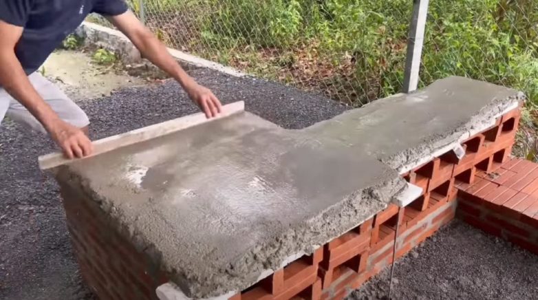 После этого приступаем к заливке второго яруса: верхней части печи, кухонной столешницы, в которую будет встраиваться металлическая мойка.