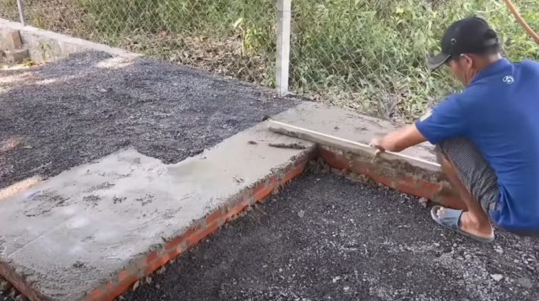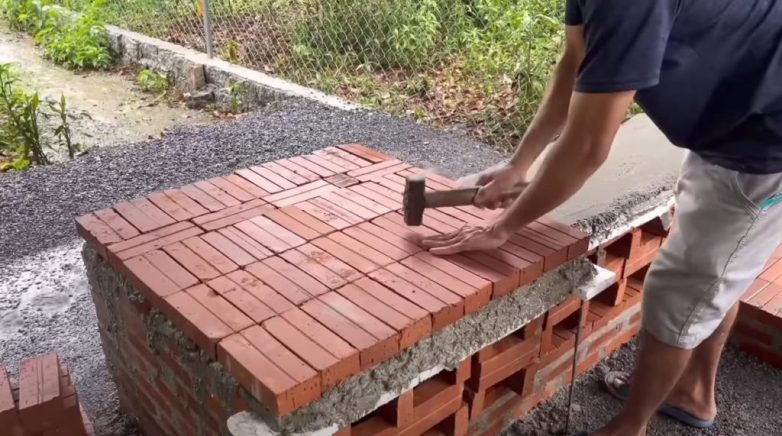 Также необходимо будет сделать площадку: заливаем ее цементно-песчаным раствором и укладываем сверху кирпичи.