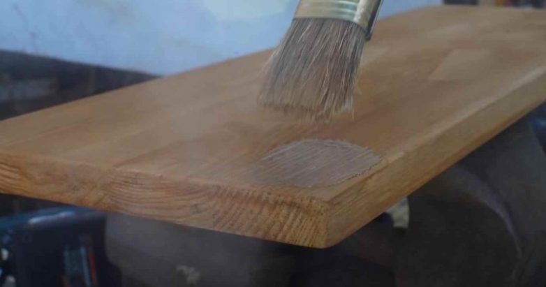 Отпиливаем кусок доски или фанеры подходящих размеров. Красим его или покрываем минеральным маслом, а потом — лаком по дереву.