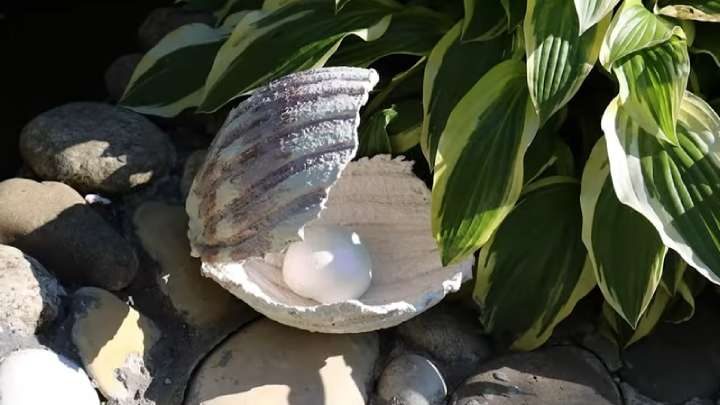 Прекрасная ракушка с жемчужиной готова украшать ваш сад!