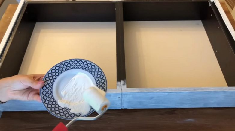 Далее необходимо будет покрасить наружную сторону ящиков. В данном случае автор использовал белую краску. Наносить нужно не менее 2—3 слоев.