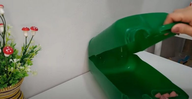 Чтобы сделать симпатичную корзинку для декора, нам потребуется половинка пластиковой канистры из-под жидкого мыла или моющего средства объемом 5—6 литров.