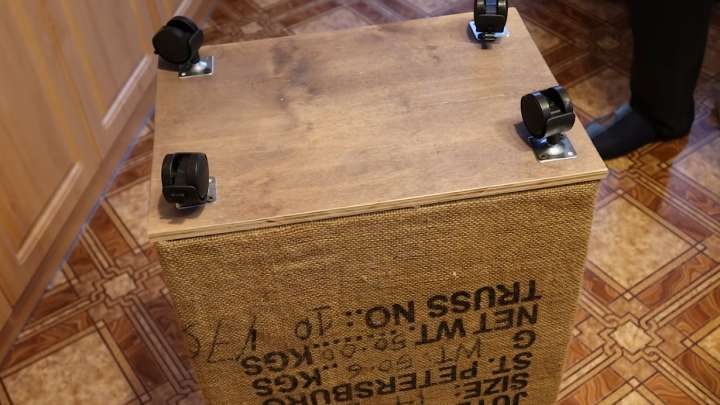 Ко дну прикрепите фанеру, а к фанере — мебельные колесики.