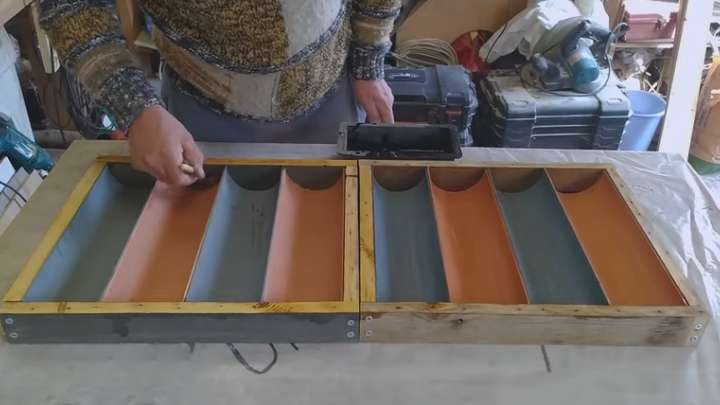 Разрежьте трубы ПВХ на части равной высоты (такой, какой хотите видеть будущий бордюр). Далее разрежьте их напополам. Из досок сделайте раму, внутрь установите половинки труб ПВХ.
