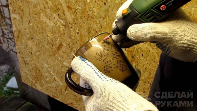 Гравировку на стекле и стеклянных изделиях (стаканах, кружках, бокалах) можно сделать своими руками, без использования станка с ЧПУ.