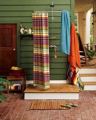 Наверное всем нравится летний душ на открытом воздухе. Он создает ощущение побережья, новизна возможности принимать душ на открытом воздухе.