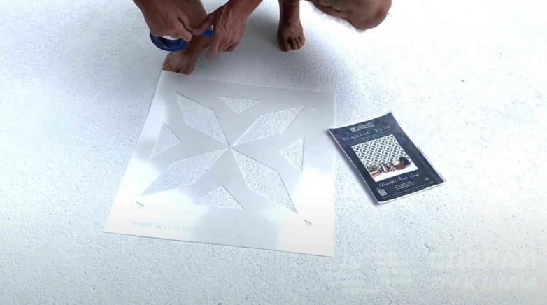 Для узора используется серый цвет. С помощью трафарета оформляем всю нашу площадку.