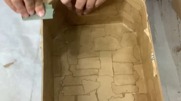 С помощью бумаги и клея ПВА, смешанного напополам с водой, заклейте ящики внутри и снаружи.