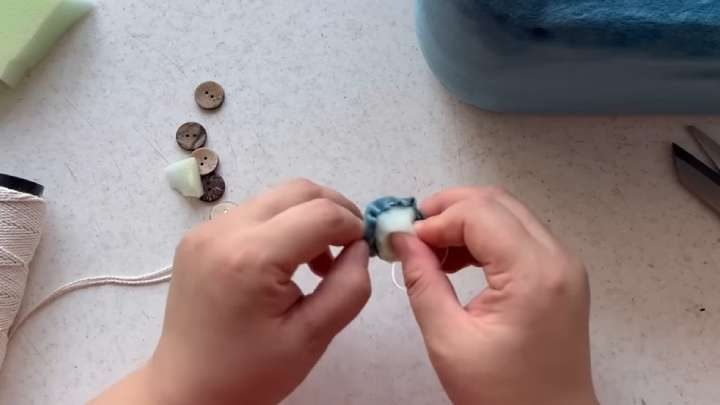 Продеть нитку, закрепить с внутренней стороны, обрезать лишнее.
