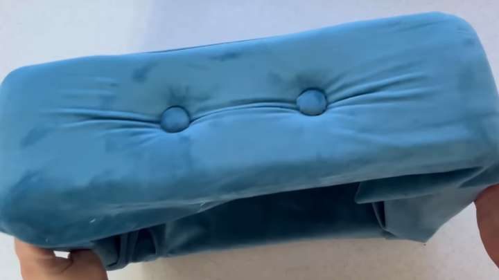 Сделать пуговицы, как на мебели. Для этого взять кусочек ткани, вставить поролон, приклеить пуговицу с ниткой. Зашить ткань.