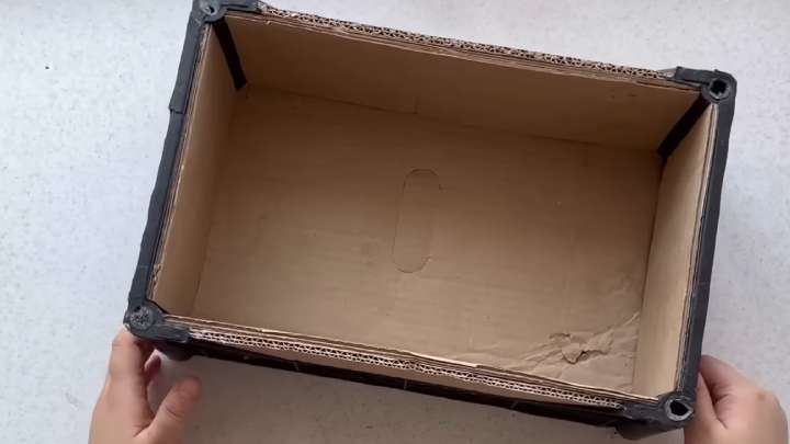 Вырезать из картона подходящие по размеру детали, вставить и проклеить внутрь ящика: по бокам и на дно.