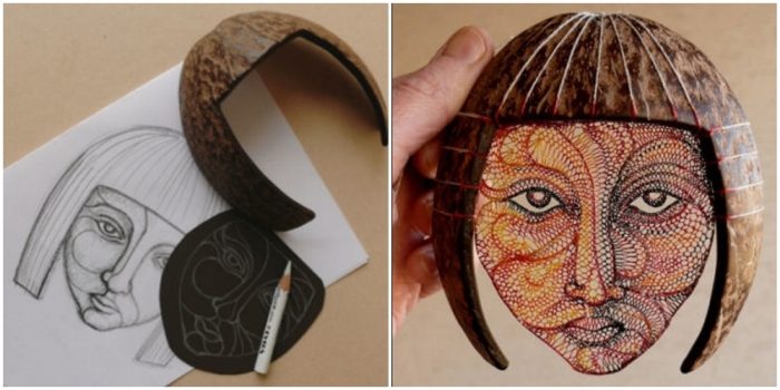 Игольчатое кружево изготавливается с помощью иглы и ниток из различных материалов и толщины. Изготовление кружева иглой на первый взгляд может показаться сложным, но на самом деле это всего лишь серия крошечных петельных стежков. Однако из-за замысловатых деталей это требует большого терпения и внимания. В основном Агнес использует натуральные нити растительного происхождения, такие как лён, конопля, хлопок, джут, рафия и чистая шёлковая нить. Ей очень нравится сочетать кружево с различными материалами, такими как кора и маленькие веточки, а иногда и скорлупа кокосовых орехов, фруктовые косточки, маленькие керамические скульптуры и так далее.