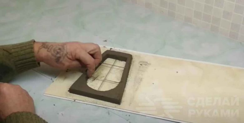 Первым делом необходимо вырезать формочку из пенопласта — для заливки цементного раствора.