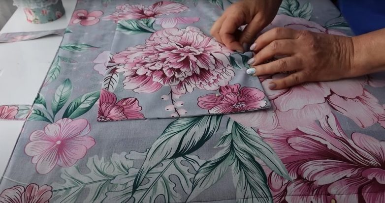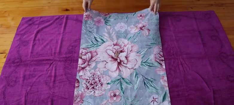 Из хлопчатобумажной ткани вырежьте прямоугольник, размеры которого должны соответствовать ширине полотенца и составлять 1/3 его длины. С каждой стороны добавьте по 2 см на подгибку.