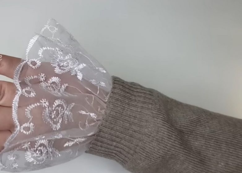 Сделать любую блузку или свитер более праздничными и нарядными очень просто. Для этого понадобится лишь два небольших отреза кружева с фестонами, из которых можно легко сшить нарядный манжет.