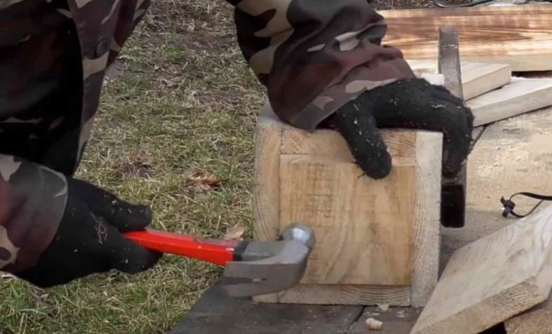 На следующем этапе изготавливаем донышко размером 12х12 см и приступаем к сборке скворечника. Соединяем вместе все четыре стороны домика, снизу вставляем донышко, и крепим его на гвозди или саморезы.