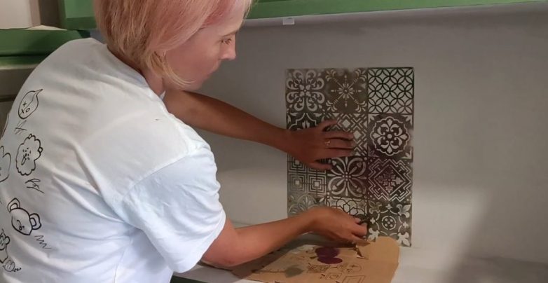 Красиво оформить заднюю стенку поможет трафарет.