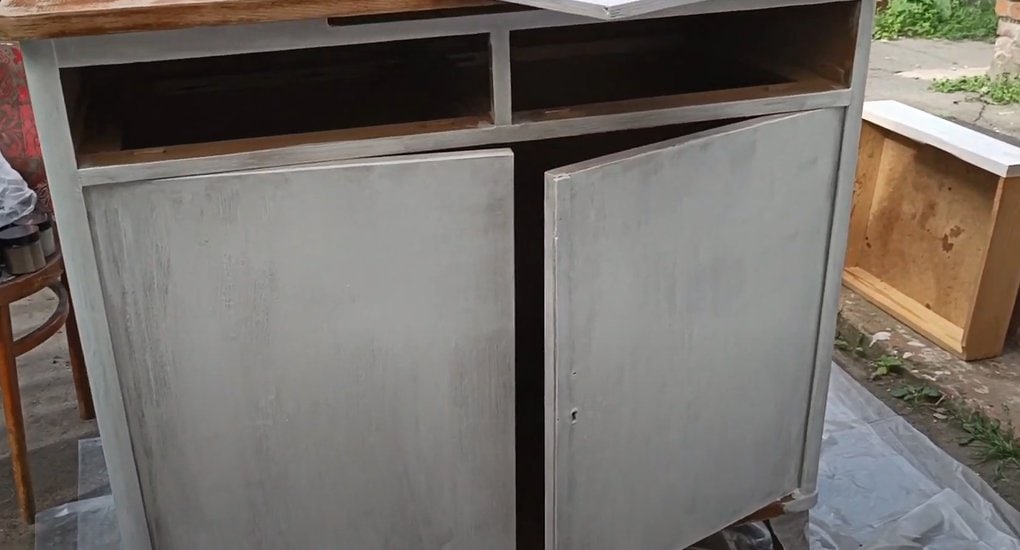 После высыхания грунтовки можно переходить к окрашиванию мебели снаружи и внутри.