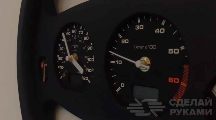 Стрелки часов и минут устанавливаем на шкале спидометра, а секундную стрелку — на шкале тахометра. Вешаем на стену, и наслаждаемся результатом проделанной работы.