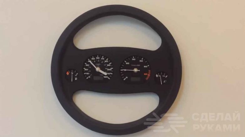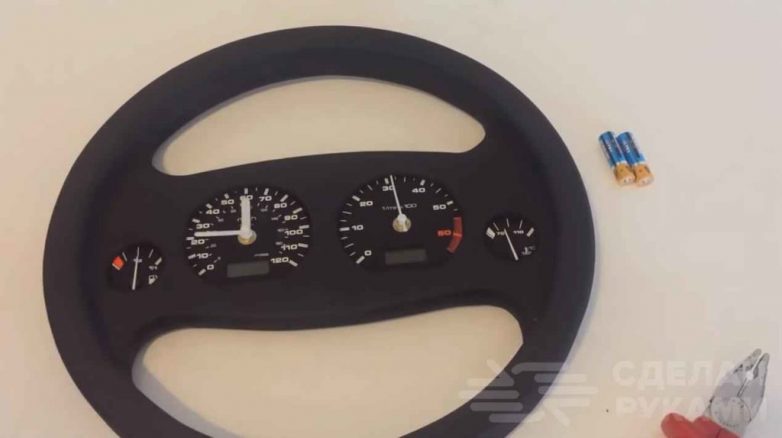 Подробно о том, как сделать настенные часы в виде рулевого колеса с автомобильной приборной панелью, можно посмотреть на видео ниже. Идея принадлежит автору YouTube канала.
