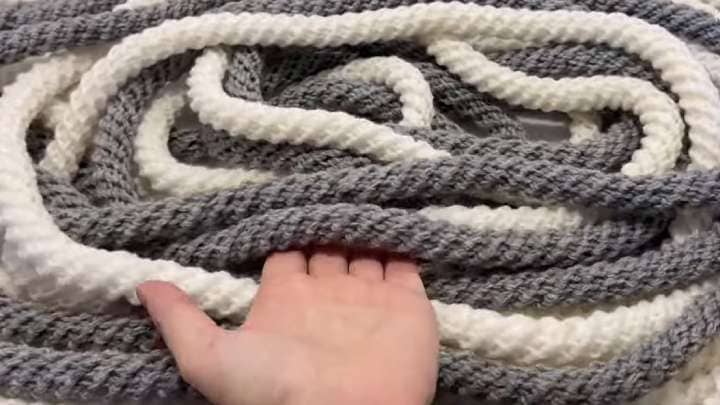У вас получится такой удивительный коврик! Очень воздушный, мягкий, а ещё — необычной формы. Делать его — одно удовольствие!