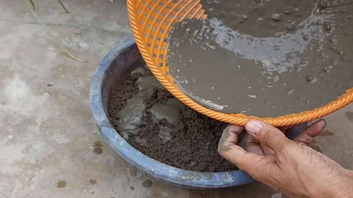 Теперь замешайте густой цементный раствор из 3 частей песка и 1 части цемента. Покройте им стенки и дно внутри. Старайтесь делать ровный слой.