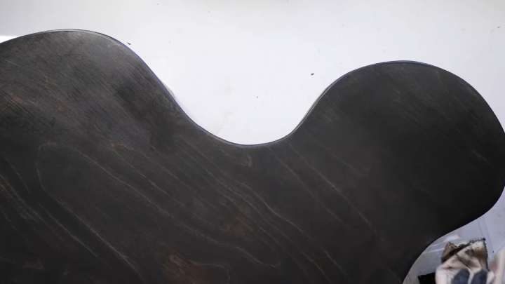Из фанеры вырежьте произвольную форму, но чтобы с одной стороны круг из доски идеально совмещался с фанерой.