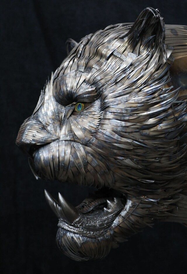 Сотни тонких, замысловато расположенных металлических полосок образуют впечатляющие портреты представителей дикой природы, созданные руками турецкого скульптора по имени Сельчук Йилмаз (Selçuk Yılmaz).