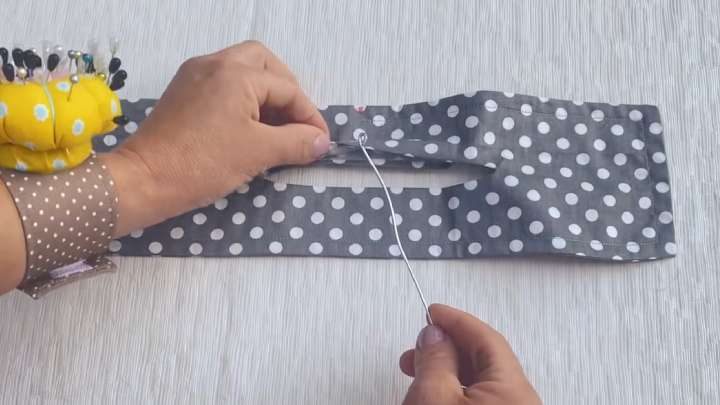 Сложите края и прошейте по верхней стороне.