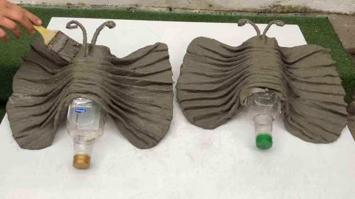 Переверните, покройте тем же цементным раствором бабочку изнутри.