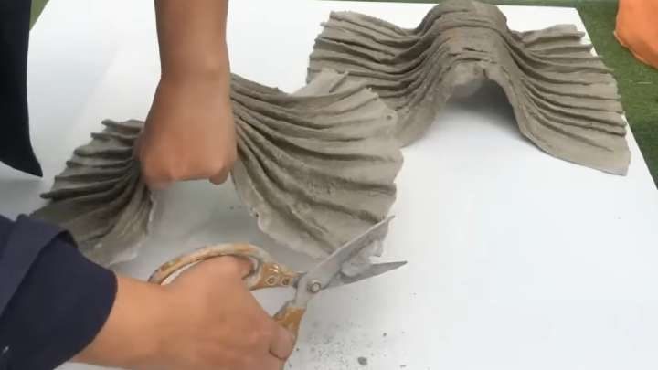 Разведите цемент водой. Пропитайте им плотную ткань прямоугольной формы. Рабочую поверхность застелите плёнкой. Работайте в перчатках. Из ткани, пропитанной цементным раствором, сформируйте «бантик» со складками.