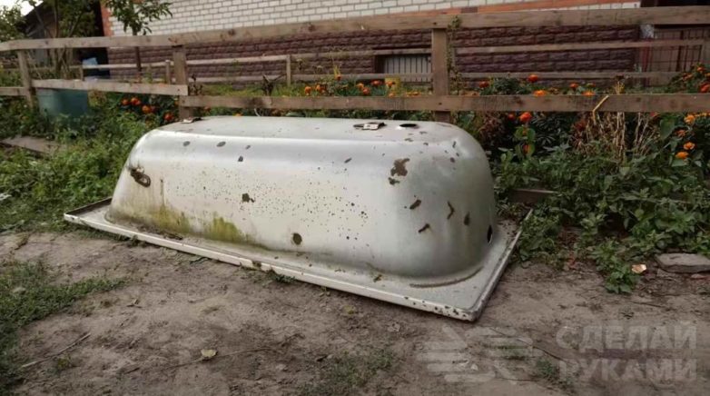 На следующем этапе нам потребуется старая металлическая ванна. Отмываем ее от грязи (если в этом есть необходимость).