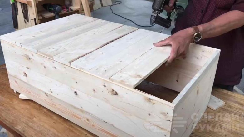 Начало работ у нас традиционное — аккуратно разбираем поддоны на отдельные доски, которые потом нужно прострогать и отшлифовать. Одним словом — надо привести их в нормальное состояние.
