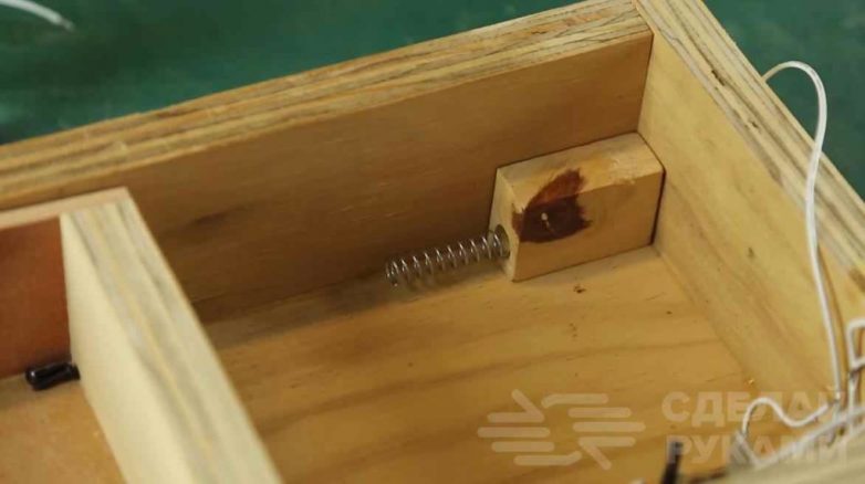 Также необходимо будет установить пружину, которая будет толкать ящик при открытии. Выполняем необходимые электромонтажные работы.