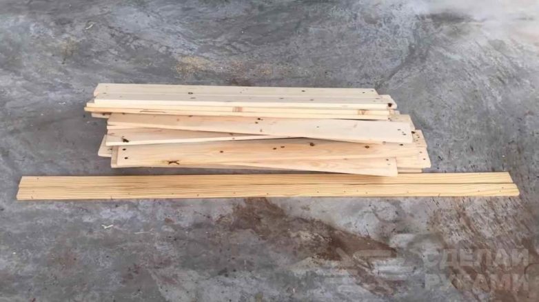 Сначала надо будет разобрать поддоны. Доски строгаем, прогоняем через рейсмус и обрезаем по размеру на циркулярной пиле.