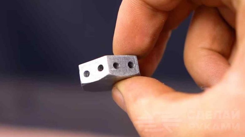 На следующем этапе в шляпке болта нужно будет просверлить шесть глухих отверстий (по два отверстия в каждой грани). Еще одно отверстие автор сверлит на стыке двух граней.