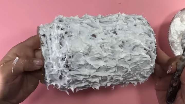 Нанесите смесь на стеклянную банку, при этом как бы отрывайте инструмент вверх, чтобы получились пики. Оставьте просохнуть.