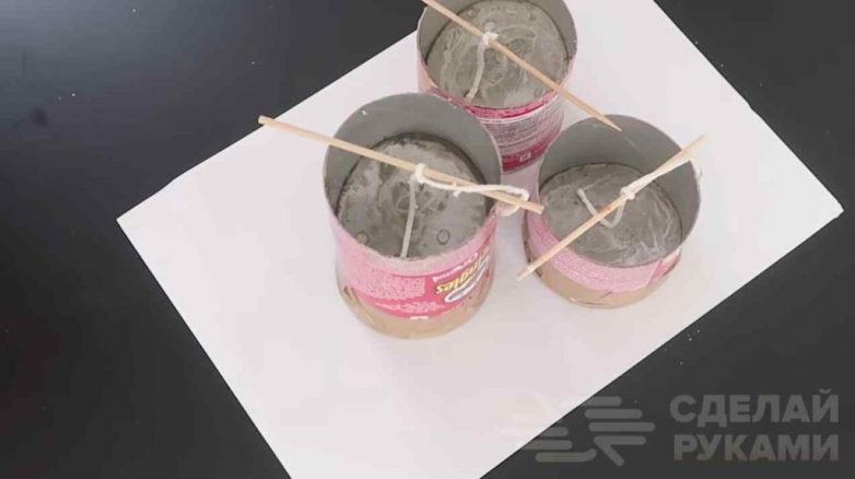 В качестве формы автор использует цилиндрическую банку из-под чипсов. Ее нужно нарезать на несколько частей подходящей высоты. Дно можно сделать из плотного картона, зафиксировав его скотчем.