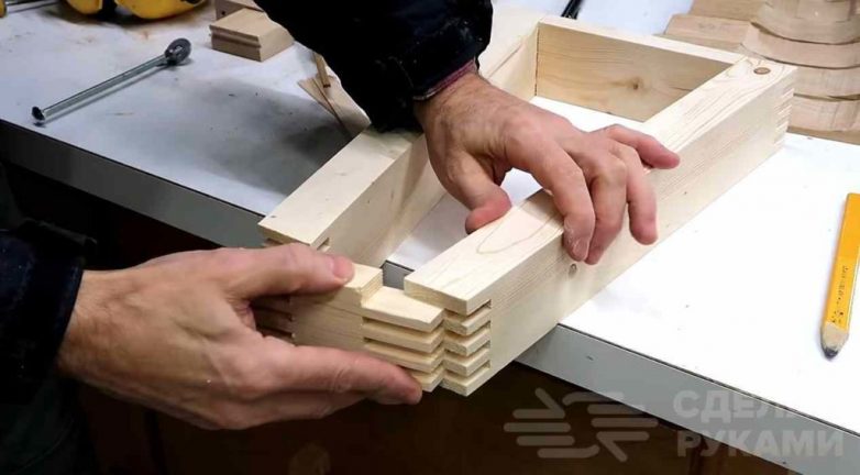 Резонатор можно изготовить из любых деревянных брусков, предварительно подготовив их под соединение «шип-паз». В боковых стенках вырезаем полукруглые фаски примерно на треть глубины бруска. Склеиваем наше основание.