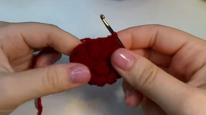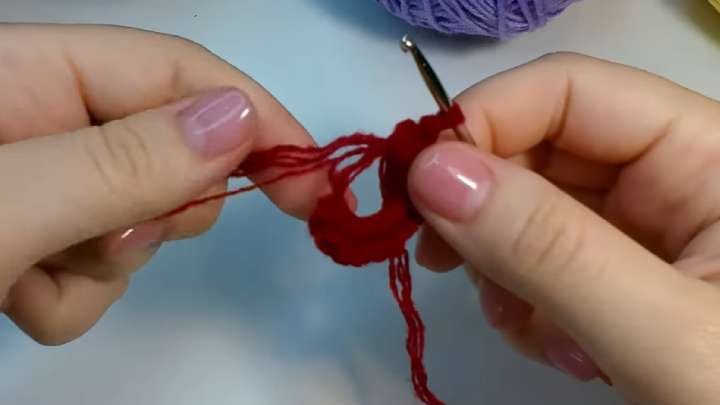 Провяжите 12 таких пышных столбиков по кругу. В конце, как всегда, завершайте ряд соединительной петлей.