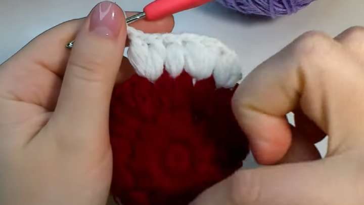 Чтобы круг расширялся, в следующем ряду в каждую петлю вяжите по 2 пышных столбика.