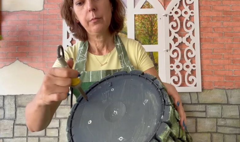 Используя паяльник, сделайте в нижней части кашпо дренажные отверстия.