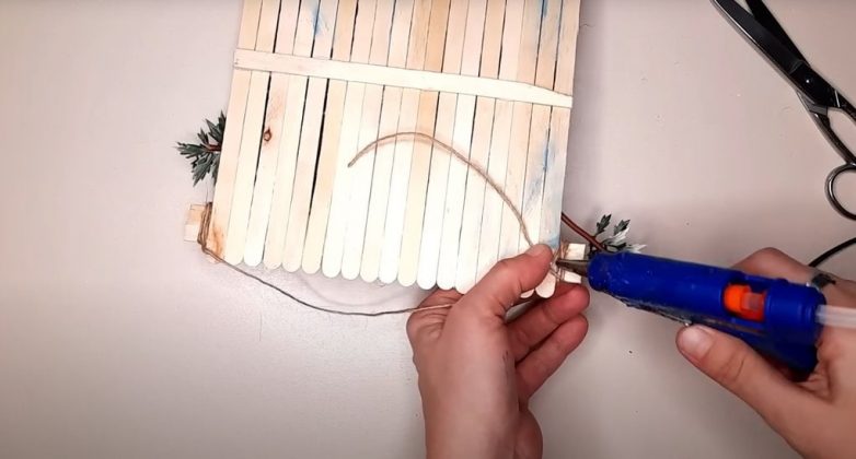 Для того чтобы конструкция была более устойчива, приклейте по 2 горизонтальные шпажки в нижней и верхней части будущей картины и еще одну шпажку с задней стороны посередине.